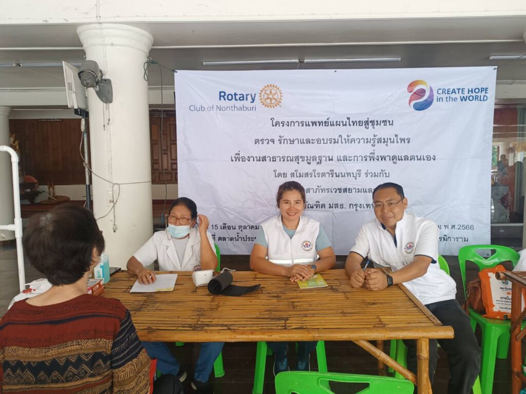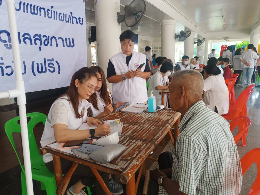 ภาพบรรยากาศ วันศุกร์ที่ ๒๐ ต.ค.๒๕๖๖ นักศึกษาภัทรเวชสยาม(การแพทย์แผนไทย) รุ่น 18 วันศุกร์ และทีมจิตอาสาภัทรเวชสยาม ร่วมกับสโมสรโรตารี่ นนทบุรี ออกหน่วยบริการตรวจรักษาดูแลสุขภาพประชาชนทั่วไป(ฟรี) สถานที่ วัดสุนทรธรรมิกา จ.นนทบุรี