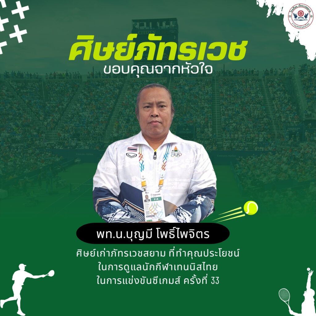 ศิษย์ภัทรเวชสยาม ขอขอบคุณจากหัวใจ พท.น.บุญมี โพธิ์ไพจิตร ศิษย์เก่าภัทรเวชสยาม ได้ทำคุณประโยชน์ดูแลนักกีฬาเทนนิสไทย ในการแข่งขันซีเกมส์ ครั้งที่ 33