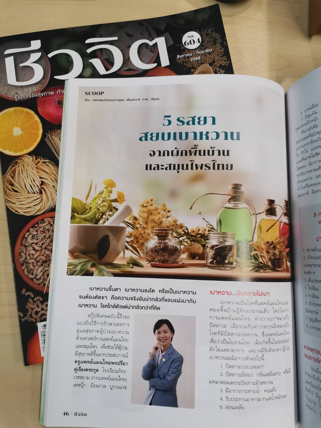 📖นิตยสารชีวจิต ถือเป็นสื่อสุขภาพอันดับต้น ๆ ของประเทศไทย ที่มุ่งเน้นการนำเสนอสาระเพื่อการดูแลสุขภาพด้วยวิธีธรรมชาติ การที่อาจารย์ของเราได้รับการเผยแพร่ผลงานครั้งนี้ จึงเป็นทั้งความภาคภูมิใจ และเป็นแรงบันดาลใจให้กับผู้ที่สนใจแนวทางแพทย์แผนไทย🌿 สุขภาพที่ดี เริ่มต้นจากการเลือกอาหารที่ถูกต้อง และภูมิปัญญาสมุนไพรไทยก็ยังคงทันสมัยอยู่เสมอ